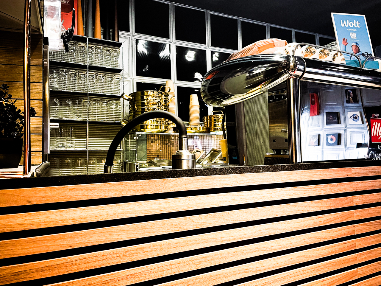 Direkt beim Reingehen fällt auf, wie liebevoll alles gestaltet ist. Überall entdeckt man Hinweise auf die Zusammenarbeit mit Illi – von kleinen Details an den Wänden bis hin zu den Serviersachen. Das Essen wird in auffälligen, goldfarbenen Schalen serviert – kein echtes Gold natürlich, aber definitiv ein Hingucker.