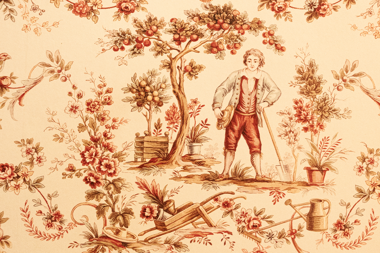 Wir haben Kunstbilder, und in den neuen Zimmern außerdem Dekortapeten mit Stuckelementen.