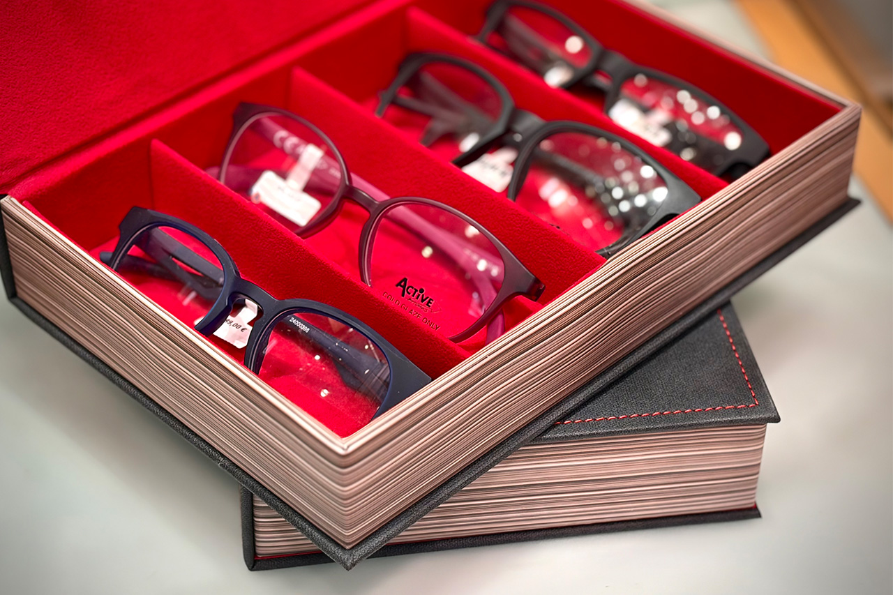 Im hinteren Bereich des Ladens werden die Gläser direkt vor Ort passgenau eingeschliffen – ein handwerklicher Prozess, der spürbar zur Qualität beiträgt. Man bekommt nicht nur eine Brille, sondern ein sorgfältig abgestimmtes Stück Arbeit.