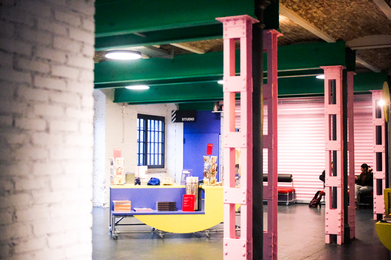 Schon beim Betreten merkt man sofort: Das ist nicht einfach nur ein Provisorium. Knallige Farben wie Pink, Blau und Rot ziehen sich durch die Räume und verleihen dem Haus eine frische, lebendige Atmosphäre. Gleichzeitig wurden bewusst alte Spuren erhalten – Graffiti, freiliegender Stein und bestimmte Strukturen bleiben sichtbar. Nicht aus Nachlässigkeit, sondern aus Respekt gegenüber der Geschichte des Gebäudes.