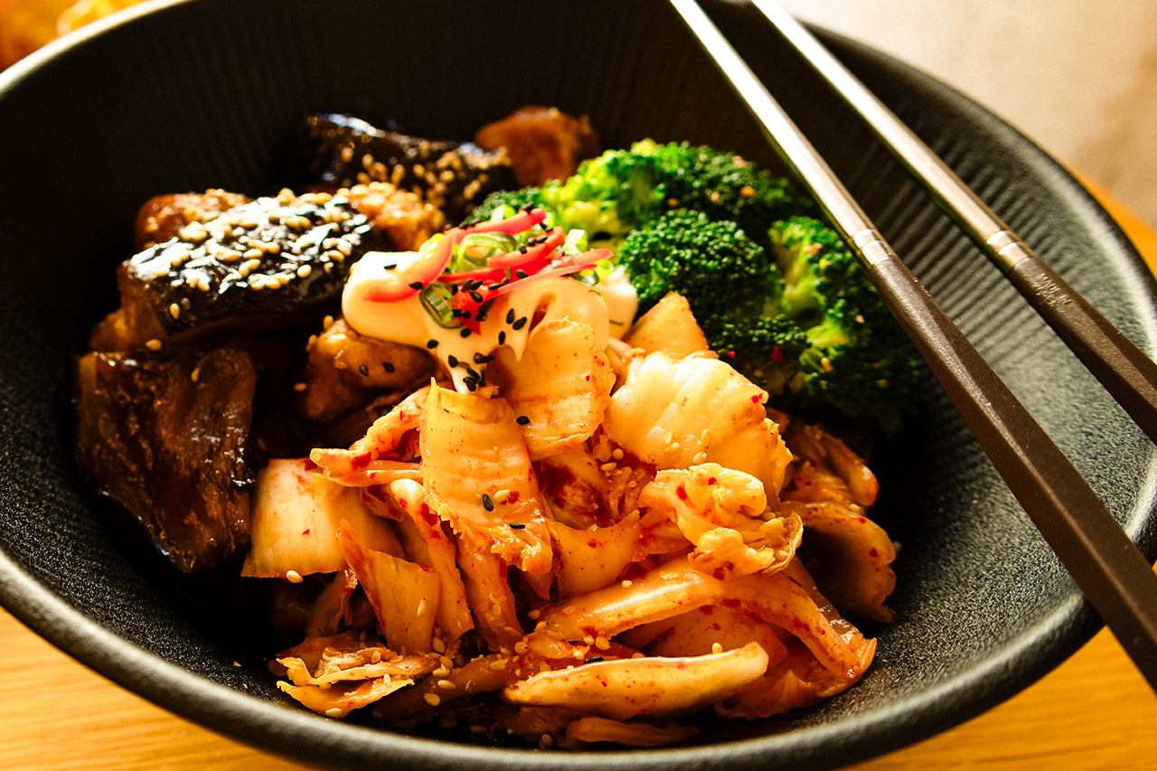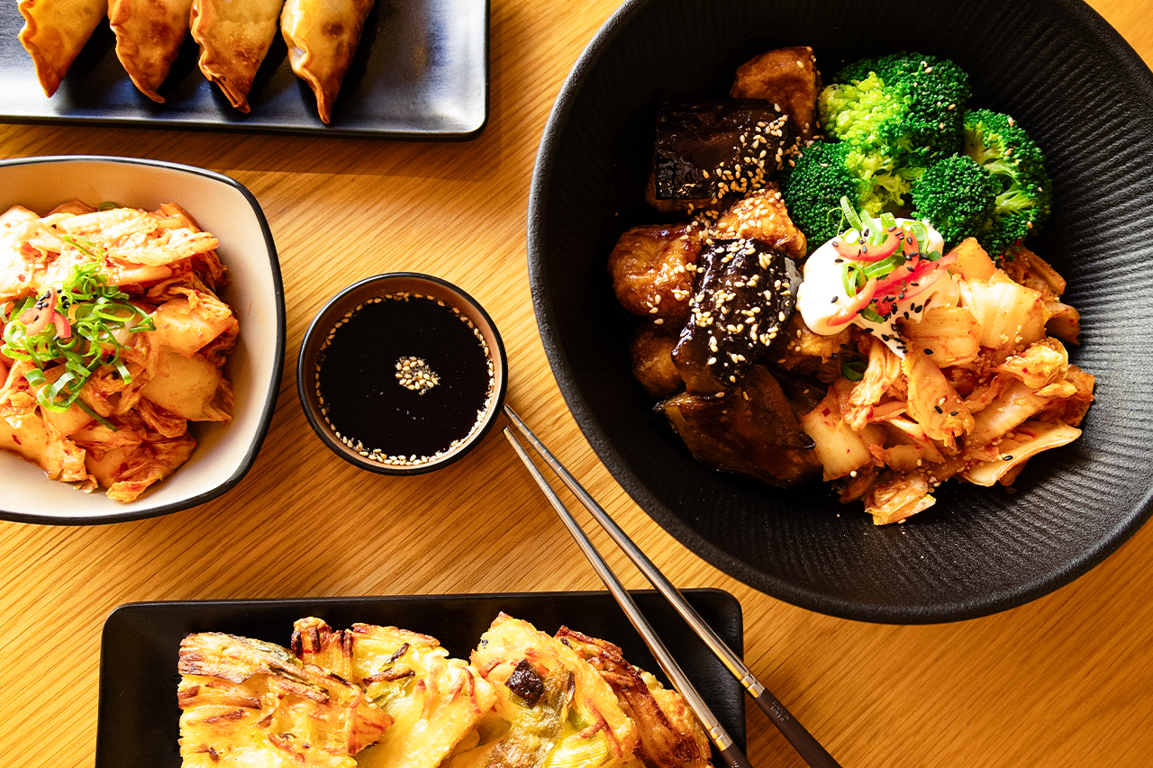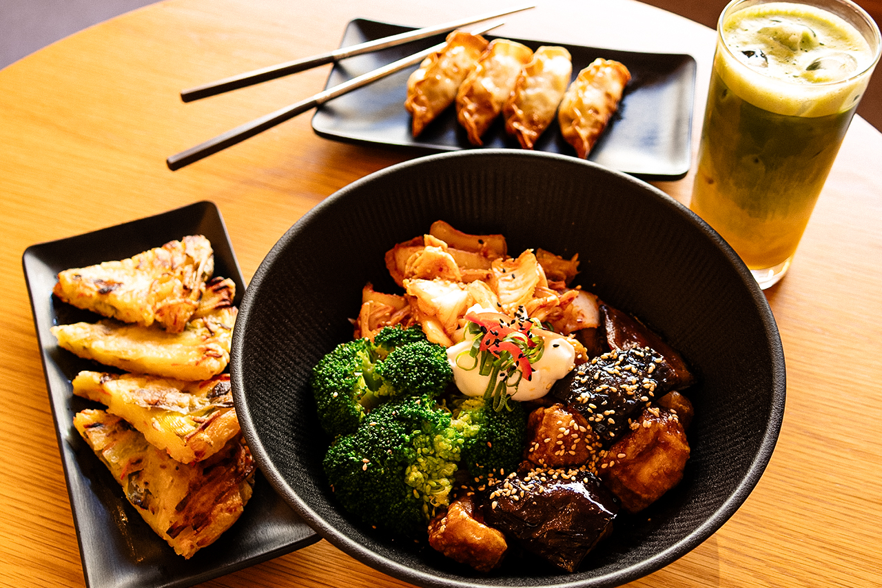 – Fast alle Gerichte, die auf der Karte stehen, werden im Haus gemacht: verschiedene Bibimbap-Variationen und andere Hauptgerichte, Vorspeisen wie Jeon, Kimbap und Kimchi, aber auch verschiedene Desserts wie Bananenkuchen, Bananenpudding, Matcha-Chinoa-Pudding und Black-Sesam-Pudding.