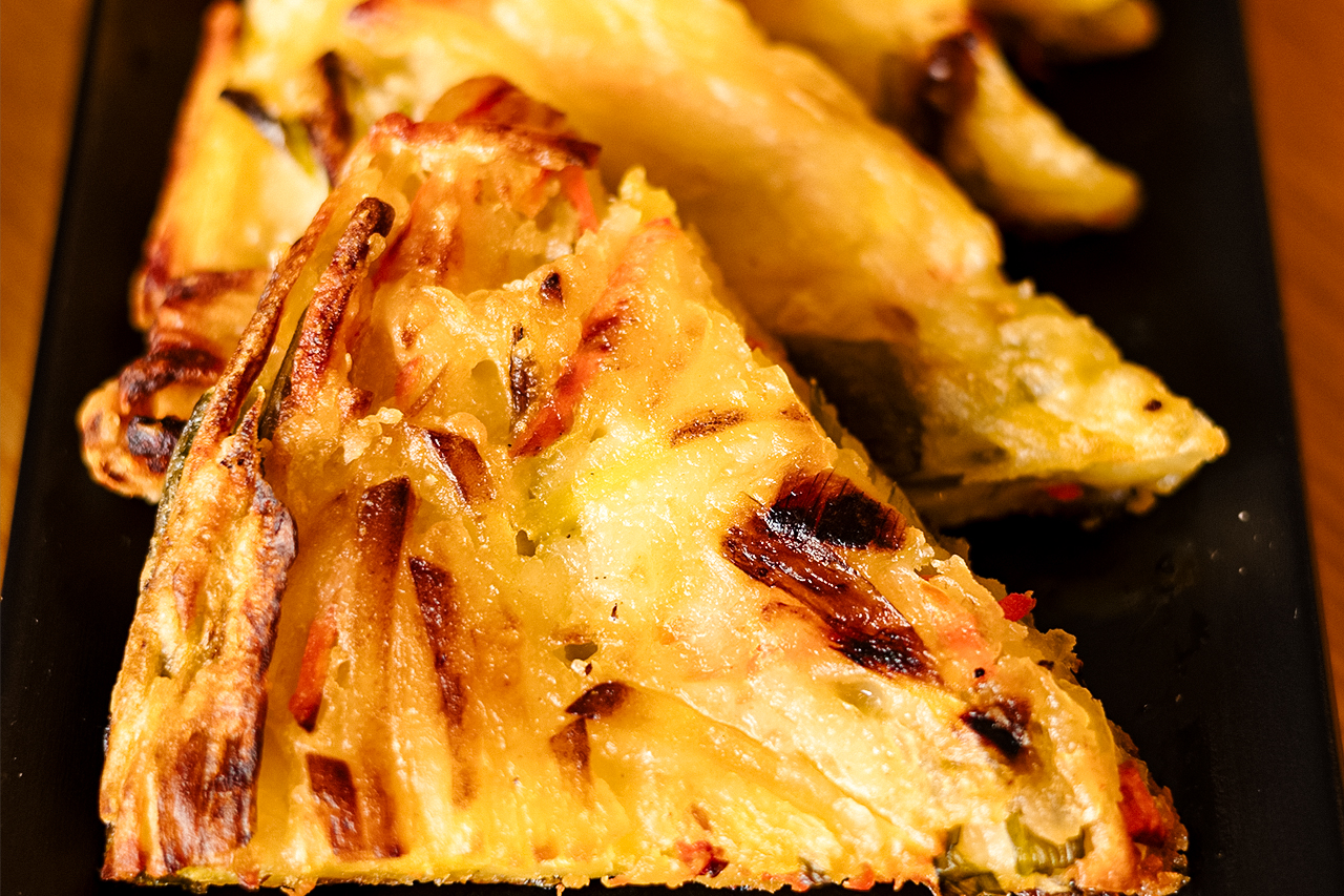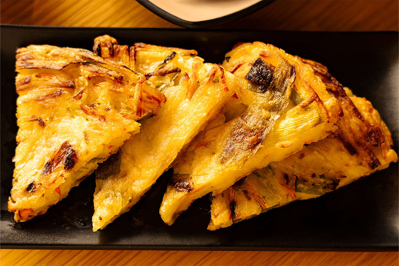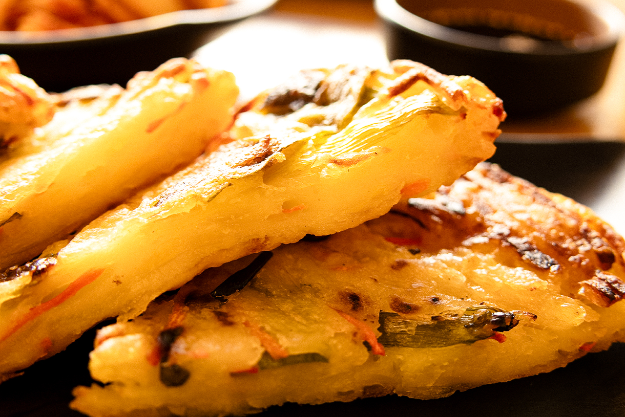 – Fast alle Gerichte, die auf der Karte stehen, werden im Haus gemacht: verschiedene Bibimbap-Variationen und andere Hauptgerichte, Vorspeisen wie Jeon, Kimbap und Kimchi, aber auch verschiedene Desserts wie Bananenkuchen, Bananenpudding, Matcha-Chinoa-Pudding und Black-Sesam-Pudding.